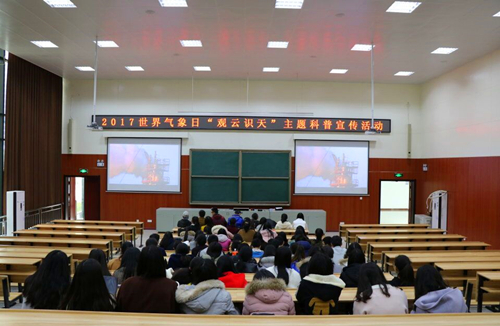 3月21日,永利集团社实部和自然之友协会联合举办了2017年世界气象日“观云识天”主题科普活动。活动邀请到了常德市气象学会秘书长郭蓉芳、花山观象台副站长吴浪以及常德市气象台预报员田泽芸。同时资旅学院院长彭保发,党总书记高伟也到场参加了此次活动。
