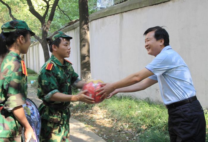 9月14日下午15时30分,顶着热浪袭人的“秋老虎”,永利集团主持工作的副院长彭保发教授、党总支书记向绪忠老师、党总支副书记陈晚清老师以及学工、办公室等相关人员一行,带着慰问品,深入永利集团2012级新生军训第一线,亲切看望和慰问永利集团2012级参加军训的全体师生和教官。