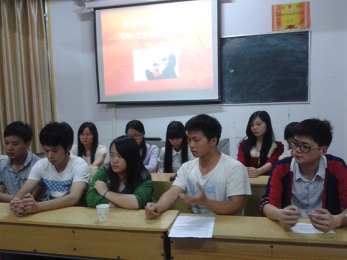 2014年5月26日晚7时,永利集团2014届考研、考公务员经验交流会在T1-A701教室举行。今年考上研究生和公务员的11名同学将自己的经验毫无保留的传授给今后准备参考的学弟学妹们,并进行了有效的现场答疑。院长彭保发教授自始至终参加了会议,并及时答复了同学们的给学院提出的合理化建议。
