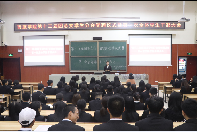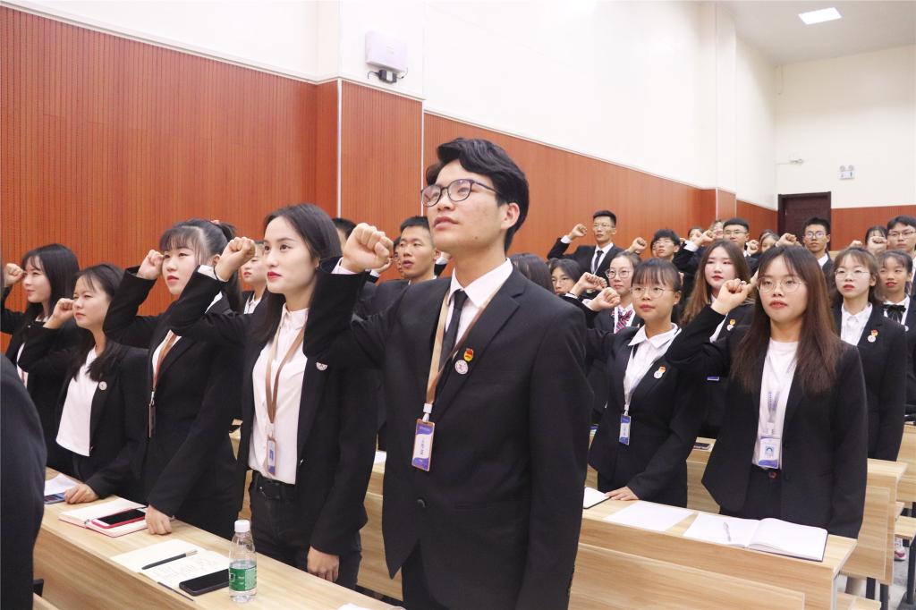 活动第一项由郭婧副书记致辞,她教导永利集团学子牢记——“讲文明语,行文明事,做文明人,创文明学院”。活动第二项举行授牌仪式,各部门合影留念。活动第三项学生部干事肖遥回首考核经历,希望我们带着真诚,激情和责任心上路,去努力完成属于我们的光荣使命!活动第四项学生会部长代表干兆娟对优秀的学生干部提出建议,愿我们用身体践行,力争成为优秀学生干部!活动第五项第一团副袁孟琪呼吁大家坚守初衷,砥砺前行,在学生会这个大家庭里共同努力!活动第六项学工办老师丁斐嘉老师对学生干部提出建议,希望学生会这个大家庭向前发展,更进一步。活动最后,全体成员共同宣誓,为建设资旅辉煌的明天而奋斗!