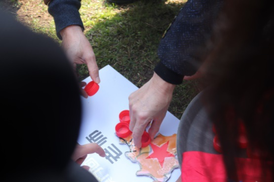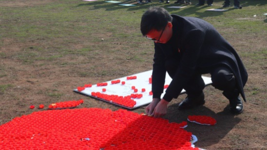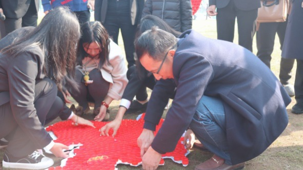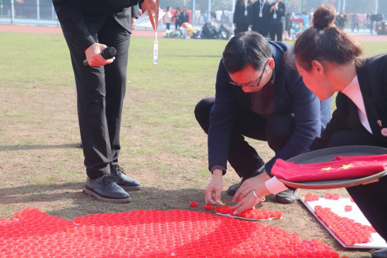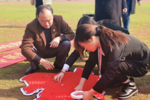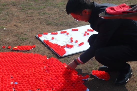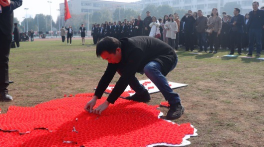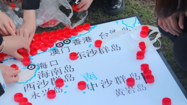 全体师生团结一致,先后完成了各负责区域的拼图和完整中国地图的拼接工作。最后由校领导、院领导用不同颜色大小的五角星标注出中国常德、中国台北、中国香港、中国澳门以及中国首都北京。四千余个废弃红色瓶盖组成中国地图的那一刻,感染了在场的每一位师生。祖国二字,让多少人心中泛起温柔的波浪,让多少人眼里涌起晶莹的泪花,让多少人胸中奔腾一股股热血。大家庄严肃立,一起奏唱国歌,坚定了维护祖国统一,反对分裂的信念,任何分裂中国企图都是痴心妄想!拼图作品现展示在东附楼㤚架处,欢迎大家前去观看、学习。