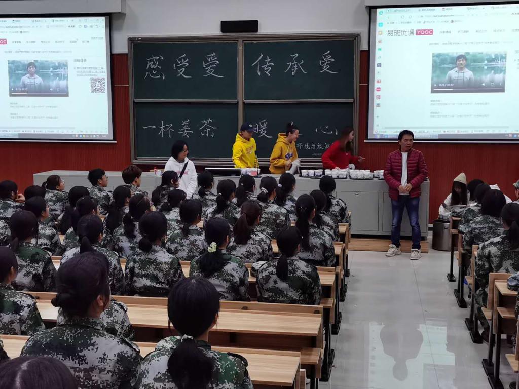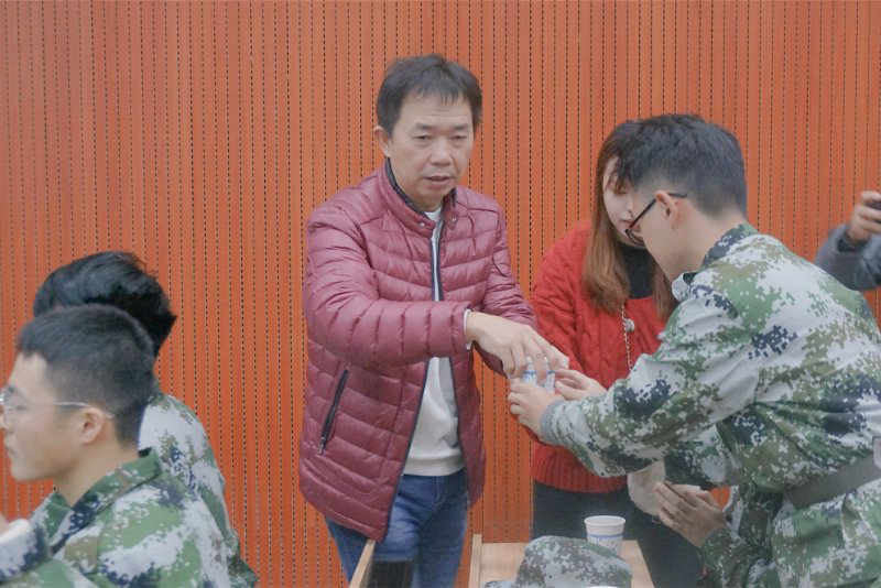 院长彭保发教授、党总支书记郭兴体老师、副书记郭婧老师、院长助理夏汉军博士及学院各科室负责人、专业教师等一行深入各连队慰问,了解参训新生的实际状况,切身体会军训新生感受。“常德的天气变化太快,你们一定要搞好后勤,多备点药品和姜茶”。彭保发院长和郭兴体书记非常细心地为新生送上刚刚熬制的姜茶,叮嘱助理班主任和新生辅导员。随后,彭保发院长向全体学院新生发表简短而又有力的讲话,首先他向各参训同学表达深深关切之情,随后对各位辛勤付出、不辞辛劳的教官表示崇高的敬意,并且勉励同学们在接下来的军训生活中继续保持资旅学院军训的优良表现,展现资旅学院新一代的良好风貌。
