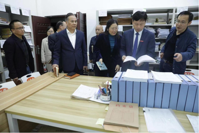 图四、龙献忠书记一行查看资料室